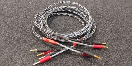 rzewód głośnikowy Single-wire w konfekcji własnej Standard: 2x2 (8 żył skręconych współosiowo, 4 na kanał) długość: 2 odcinki po 2,4 mb wtyki: Chord przewód bazowy: Kimber Kable 4VS 4VS to przewód głośnikowy składający się z ośmiu linek z ultra czystej miedzi o konstrukcji VariStrandTM (przewodniki o różnych grubościach), po 4 w czarnej i szarej izolacji. Przekrój 2 x 2,62 mm2, sprzedawany w konfekcji lub ze szpuli. Specyfikacja (Cp) Pojemność równoległa: 340,0 pF @ 20 kHz (Ls) Indukcyjność szeregowa: 0.596 μH @ 20 kHz (Rdc) Rezystancja dla prądu stałego: 0,041 Ω (Xt) Całkowita reaktancja: 0,075 Ω @ 20 kHz Pasmo przenoszenia ± 0,5 dB dc – 250 kHz materiał przewodnika: miedź konfekcja: własna konfekcja sklepu TEST PRASOWY PRZEWODU: https://www.whathifi.com/kimber/4vs/review