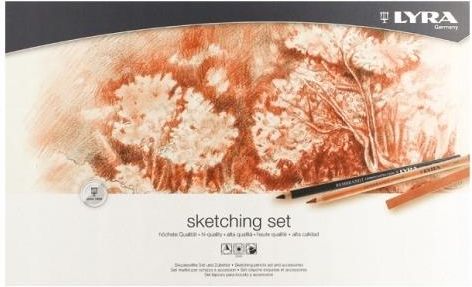 Zestaw do szkicowania LYRA w metalowym etui jest doskonały dla zaawansowanych rysowników jak i hobbystów. Zawartość 18 monochromatycznych ołówków, 12 pastelowych ołówków, 1 ekstra ciemny pastel węglowy HB, 1 ołówek węglowy 2B, 1 ostrzałka do średnicy 8,5 mm, 1 gumka chlebowa, 1 fumina.