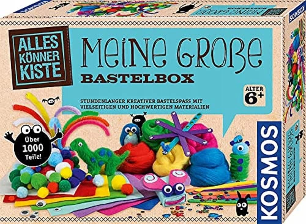 Moje duże pudełko rzemieślnicze Godziny kreatywnej zabawy z wszechstronnymi materiałami wysokiej jakości Nieograniczona zabawa w tworzenie Kreatywna zabawa z filcem, pomponami, cekinami i nie tylko! Zestaw "AllesKönnerKiste Meine große Bastelbox" zawiera różnorodne materiały rzemieślnicze dla …