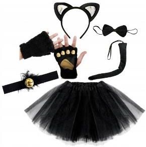 KOSTIUM KOTEK FUTRZANY 6 ELEMENTÓW OBROŻA Z DUŻYM DZWONWCZKIEM DZWONIĄCYM I REGULACJĄ WIELKOŚCI. + OPASKA Z USZKAMI BIAŁYMI ŚRODKAMI + OGONEK NA GUMCE + MUSZKA(NA SZYJĘ , NA RĘKĘ LUB JAKO GUMKA NA WŁOSY) (CZARNY PLUSZOWY KOMPLECIK KOTA ROZMIAR UNIWERSALNY ) + URZEKAJĄCA SPÓDNICZKA Z TIULU …