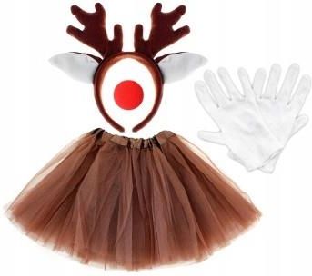 KOSTIUM JELONEK , SARENKA, RENIFER SPÓDNICZKA Z TIULU TRZYMAJĄCEGO KSZTAŁT 3 WARSTWY GUMKA OBSZYWANA SATYNOWĄ LAMÓWKĄ WYMIARY ORIENTACYJNE OBWÓD PASA 40CM , ROZCIĄGA SIĘ DO-80 CM ----->DŁUGOŚĆ 40 CM ROZMIAR UNIWERSALNY- NA GUMCE PLUS OPASKA RENIFERA OPASKA Z USZKAMI I ROGAMI PLUSZOWA ROZMIAR UNIWERSALNY RĘKAWICZKI BIAŁE KOSTIUMOWE BIAŁE ,ELASTYCZNE ROZMIAR UNIWERSALNY - ELASTYCZNE .ROZM /DŁ 26 CM NOS Z GĄBKI NAKŁADANY