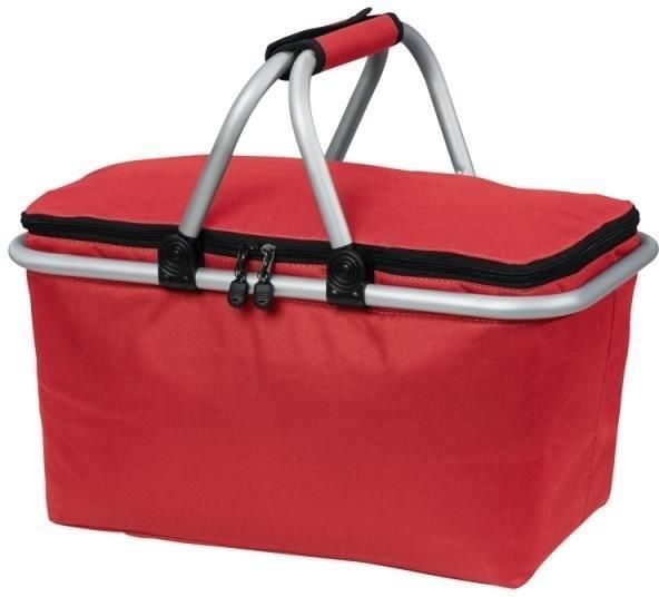 Kosz na zakupy termiczny Stan: Nowy Kolory: Czerwony Wymiary (cm): 47,5 x 27 x 22/38 cm Waga (kg): 0,783 Materiał: Poliester,Metal Koszyk na zakupy wykonany z poliestru z rączką z aluminium. Można w nim nosić nawet 15 kg. Warstwa wewnętrzna z materiału termoizolacyjnego utrzymuje temperaturę. Możliwość złożenia aluminiowego uchwytu lub całego koszyka.