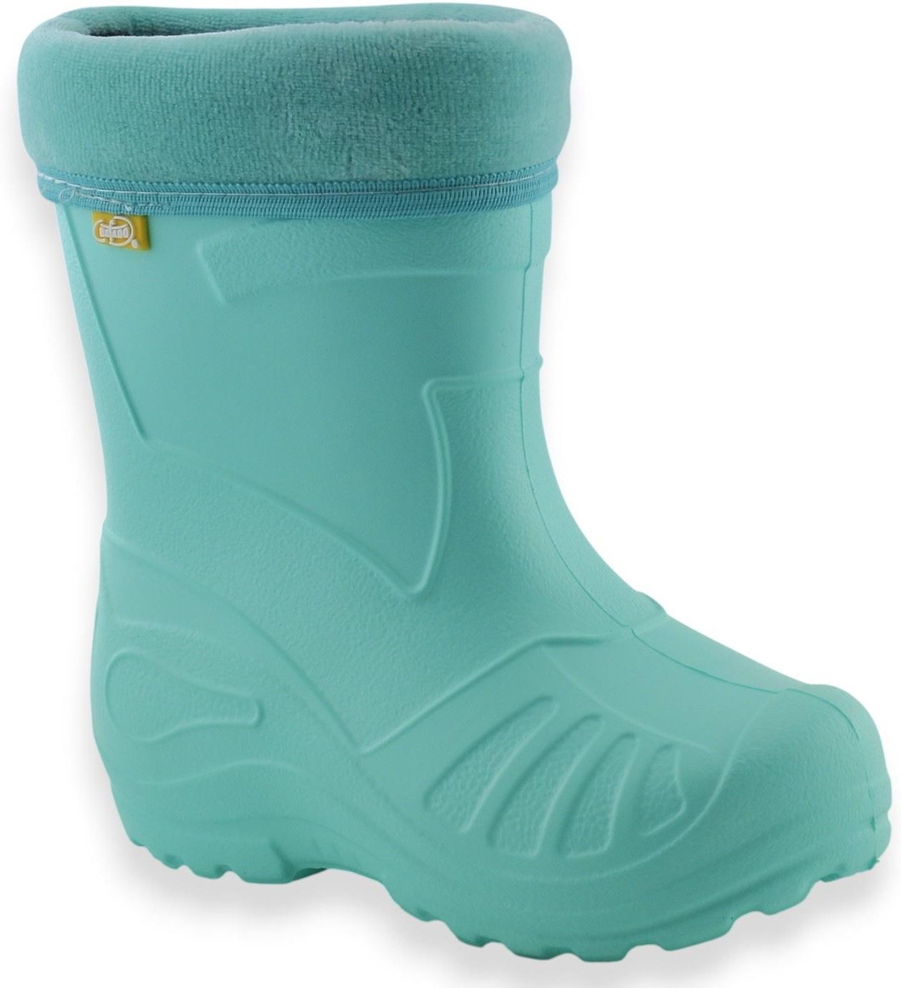 Lekkie kalosze piankowe dla dziewczynki w uroczym, miętowym kolorze. Wyposażone w ocieplaną, wyjmowaną skarpetę, gwarantują wygodę, ciepło i skuteczną ochronę przed wilgocią oraz chłodem. Doskonale sprawdzą się w deszczowe dni.