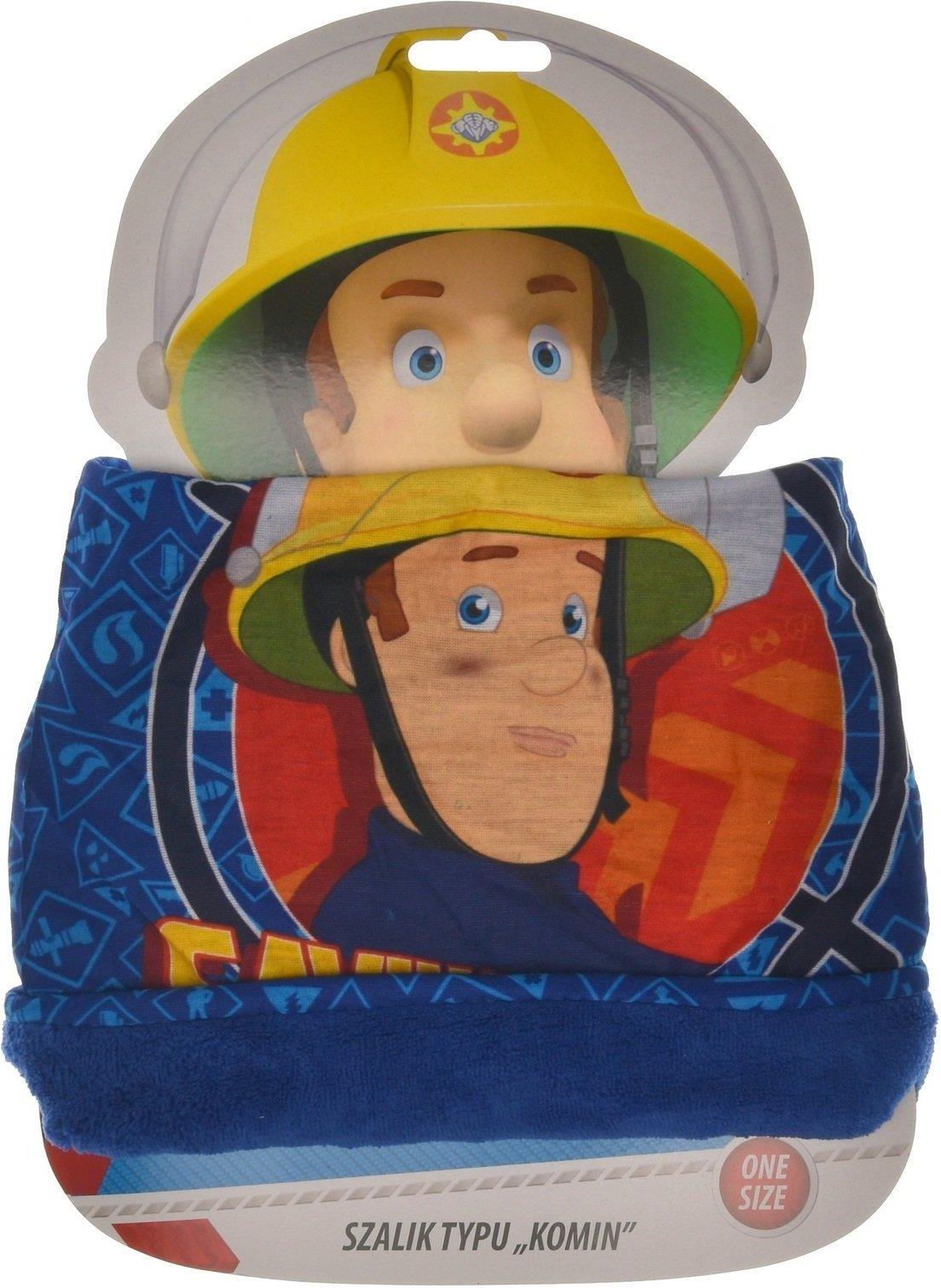 Wielofunkcyjny, dwuwarstwowy komin dla chłopca z motywem lubianej bajki Strażak Sam z granatową podszewką. Szerokość komina to 25 cm. Skład: - 100% Poliester
