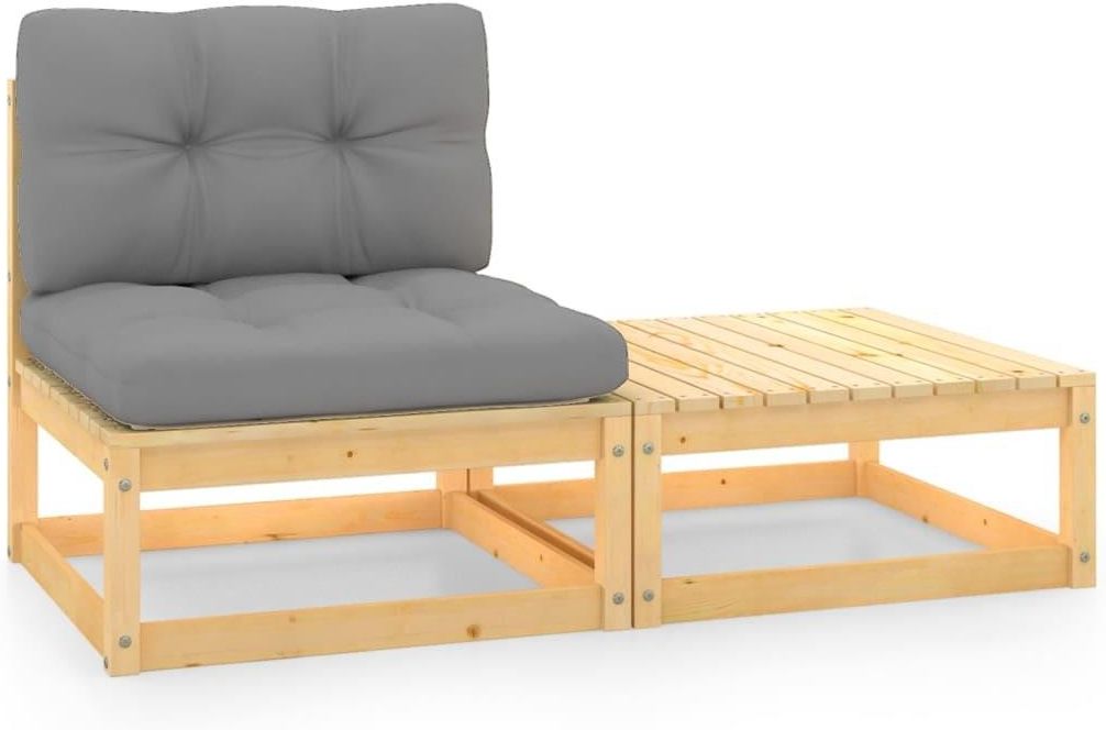 Ten ogrodowy zestaw wypoczynkowy jest znakomitym wyborem na relaks i korzystanie z pogody, a także drzemkę czy rozmowę z rodziną lub przyjaciółmi. Zestaw wypoczynkowy do ogrodu wykonano z litego drewna sosnowego, dzięki czemu jest solidny i stabilny. Poduszki zapewniają większy komfort. Możesz zestawić komplet z innymi segmentami modułowymi, aby stworzyć własne konfiguracje ogrodowych zestawów wypoczynkowych! Uwaga: aby przedłużyć żywotność mebli ogrodowych, zalecamy ich regularne czyszczenie i niepozostawianie na zewnątrz bez właściwego zabezpieczenia. Czyszczenie: użyj roztworu wody z delikatnym detergentem Przechowywanie: jeśli to możliwe, przechowuj produkt w chłodnym, suchym miejscu, najlepiej w pomieszczeniu. Jeśli ma być on przechowywany na zewnątrz, należy go zabezpieczyć wodoszczelną osłoną. Po opadach deszczu lub śniegu usuń nadmiar wody lub śniegu z płaskich powierzchni i osusz je. Zapewnij wystarczającą cyrkulację powietrza, aby uniknąć uszkodzeń spowodowanych przez wilgoć. Kolor poduszki: szary Materiał: lite drewno sosnowe, tkanina (100% poliester) Wymiary sofy środkowej: 70 x 70 x 67 cm (szer. x gł. x wys.) Wymiary podnóżka: 70 x 70 x 30 cm (szer. x gł. x wys.) Wymiary poduszki na siedzisko: 58 x 58 x 10 cm (dł. x szer. x gr.) Wymiary poduszki na oparcie: 50 x 40 x 12 cm (dł. x szer. x gr.) Wymagany montaż: tak Zawartość przesyłki: 1 x sofa środkowa 1 x podnóżek 1 x poduszka na siedzisko 1 x poduszka na oparcie