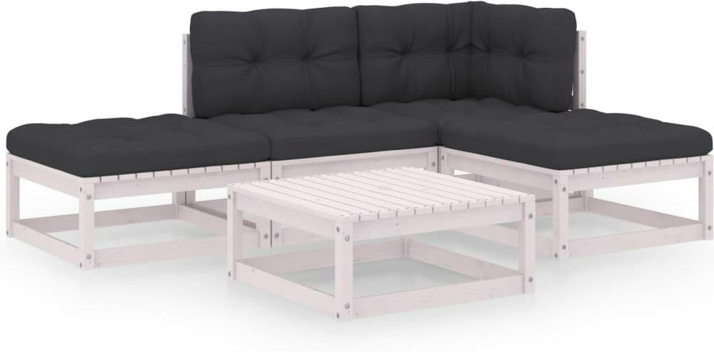 Ten ogrodowy zestaw wypoczynkowy jest znakomitym wyborem na relaks i korzystanie z pogody, a także drzemkę czy rozmowę z rodziną lub przyjaciółmi. Zestaw mebli wypoczynkowych do ogrodu wykonano z litego drewna sosnowego, dzięki czemu jest solidny i stabilny. Poduszki zapewniają większy komfort. Możesz zestawić komplet z innymi segmentami modułowymi, aby stworzyć własne konfiguracje ogrodowych zestawów wypoczynkowych! Uwaga: aby przedłużyć żywotność mebli ogrodowych, zalecamy ich regularne czyszczenie i niepozostawianie na zewnątrz bez właściwego zabezpieczenia. Czyszczenie: użyj roztworu wody z delikatnym detergentem Przechowywanie: jeżeli jest to możliwe, przechowuj produkt w chłodnym i suchym miejscu, najlepiej w pomieszczeniu. Jeśli ma on być przechowywany na zewnątrz, należy go zabezpieczyć wodoszczelnym pokrowcem. Po deszczu lub śniegu usuń nadmiar wody lub śniegu z płaskich powierzchni i osusz je. Zapewnij wystarczającą cyrkulację powietrza, aby uniknąć uszkodzeń spowodowanych przez wilgoć. Kolor: biały Kolor poduszki: antracytowy Materiał: lite drewno sosnowe, tkanina (100% poliester) Wymiary sofy środkowej/narożnej: 70 x 70 x 67 cm (szer. x gł. x wys.) Wymiary stolika/podnóżka: 70 x 70 x 30 cm (szer. x gł. x wys.) Wymiary poduszki na siedzisko: 58 x 58 x 10 cm (dł. x szer. x gr.) Wymiary poduszki na oparcie/bok: 50 x 40 x 12 cm (dł. x szer. x gr.) Wymagany montaż: tak Zawartość przesyłki: 1 x sofa środkowa 1 x sofa narożna 1 x stół 2 x podnóżek 4 x poduszka na siedzisko 3 x poduszka na oparcie/bok
