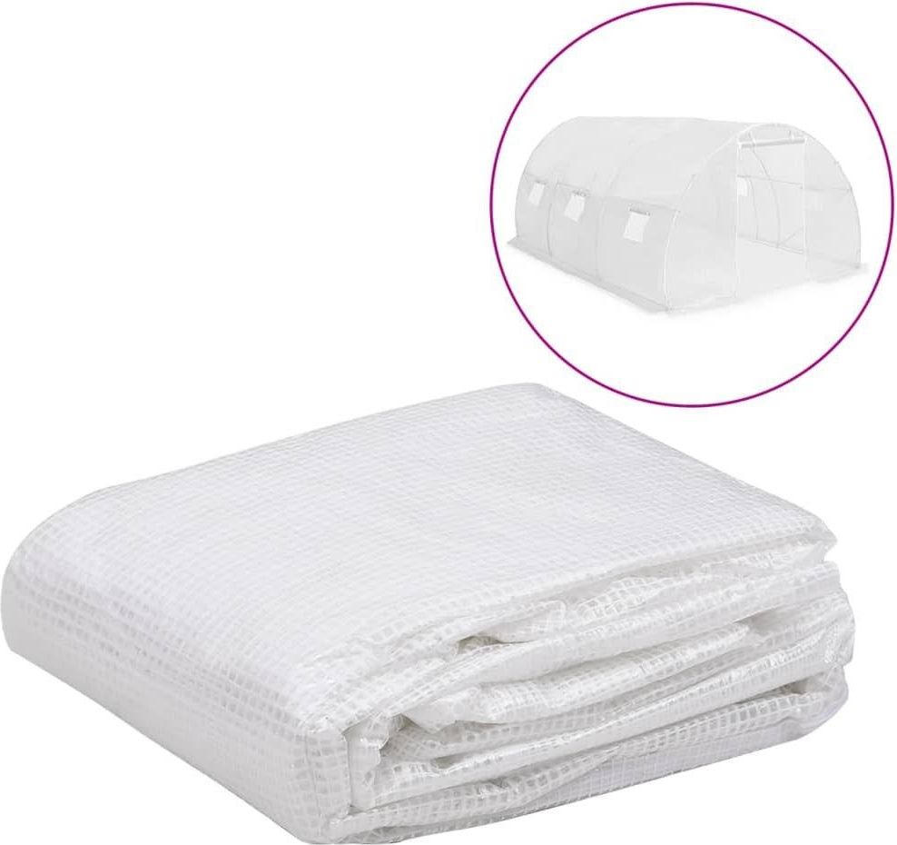 vidaXL Pokrycie do szklarni (13,5 m²), 3x4,5x2 m, przezroczyste Kolor: przezroczysty Materiał: PE (polietylen) Wymiary: 300 x 450 x 200 cm (szer. x gł. x wys.) Wymiary okienka: 38 x 38 cm (dł. x szer.) Wymiary drzwi: 100 x 185 cm (szer. x wys.) Z 6 bocznymi oknami i 1 drzwiami
