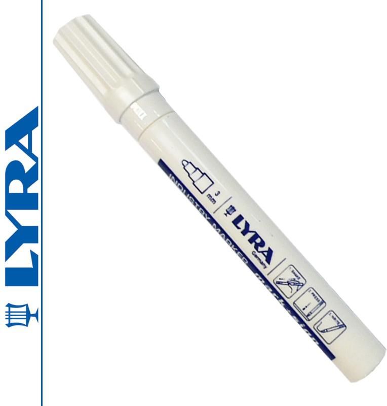 Marker lakierowy Szerokość linii 2-4mm Trwały i szybkoschnący tusz trudny do usunięcia, zachowuje właściwości do temperatury +1000 °C, nie zawiera ksylenu i toluenu Pisanie i znakowanie na gładkich i porowatych powierzchniach - kamieniu, betonie, drewnie suchym i mokrym , metalu, plastiku, na płytkach ceramicznych, szkle, oponach gumowych; (bez możliwości usunięcia) Zapakowany w folię Parametry: Marka: LYRA