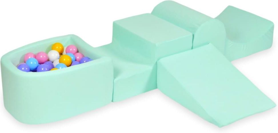 Mimii: Piankowy plac zabaw z górką i z basenem micro miętowy + 100 piłek (jasny błękit, żółte, wrzos, pudrowy róż, białe)Piankowy plac zabaw lub jak inaczej nazywany jest - piankowy tor przeszkód to niezwykła frajda dla Twojego malucha. Właściwości: Pozytywnie wpływa na rozwój dziecka Idealnie nadaje się do zabawy (Tylko pod opieką osoby dorosłej) Niezwykła zabawa od pierwszych miesięcy życia Świetnie nadaje się na prezent!Dane techniczne: W całości wykonany z pianki Pokryty pokrowcem wykonanym z przyjemnej w dotyku tkaniny [95% bawełna, 5% elastan] Posiada certyfikat CE oraz certyfikat EN-71 Pokrowiec na zamek, zdejmowany do prania (prać w temperaturze 30 stopni Celsjusza) Produkty pakujemy próżniowo, aby zredukować wielkość paczek. (Po rozpakowaniu produkty potrzebują około 7 dni na osiągnięcie właściwego kształtu)Wymiary elementów (szerokość / długość / wysokość): Schodek: 45/60/30 cm Kołyska: 45/50/30 cm Klin: 45/60/20 cm Górka: 45/30/35 cm Basen micro: 45/60/30 cm Plastikowe piłeczki do suchego basenu polski producent wykonane z nietoksycznego materiału, bezpieczne dla dzieci bardzo elastyczne, nie ulegają odkształceniu posiadają certyfikat CE średnica piłeczek 7 cmPole 'Plik' Możesz skorzystać z pola 'Plik' oraz załadować plik tekstowy lub graficzny, jeśli chcesz aby wewnątrz paczki znajdowała się wydrukowana kartka z informacją. Mogą to być życzenia lub informacja od kogo jest to prezent. Decyzję zostawiamy Tobie! (Załączanie plików nie jest obowiązkowe) Robimy krok w stronę ekologii! Jako jedni z nielicznych producentów zabawek piankowych wykorzystujemy piankę o podwyższonej gęstości. Dzięki temu, produkty z niej wykonane będą znacznie trwalsze, a co za tym idzie - będą dłużej służyły swoim małym właścicielom! Produkty pakujemy próżniowo, redukujemy dzięki temu wielkość paczek, a to z kolei bezpośrednio przekłada się na wiele korzyści. Dzięki zmniejszaniu wymiarów paczek, zredukowaliśmy również ilość ciężarówek potrzebnych do ich przewiezienia. Do jednej dziennie! Wszystkie kroki, które podjęliśmy przekładają się na mniejsze spalanie paliwa oraz mniejsze zanieczyszczanie środowiska. Uwaga! Kolory przedmiotów na zdjęciach mogą nieznacznie różnić się od rzeczywistych ze względu na różne ustawienia komputera i monitora.