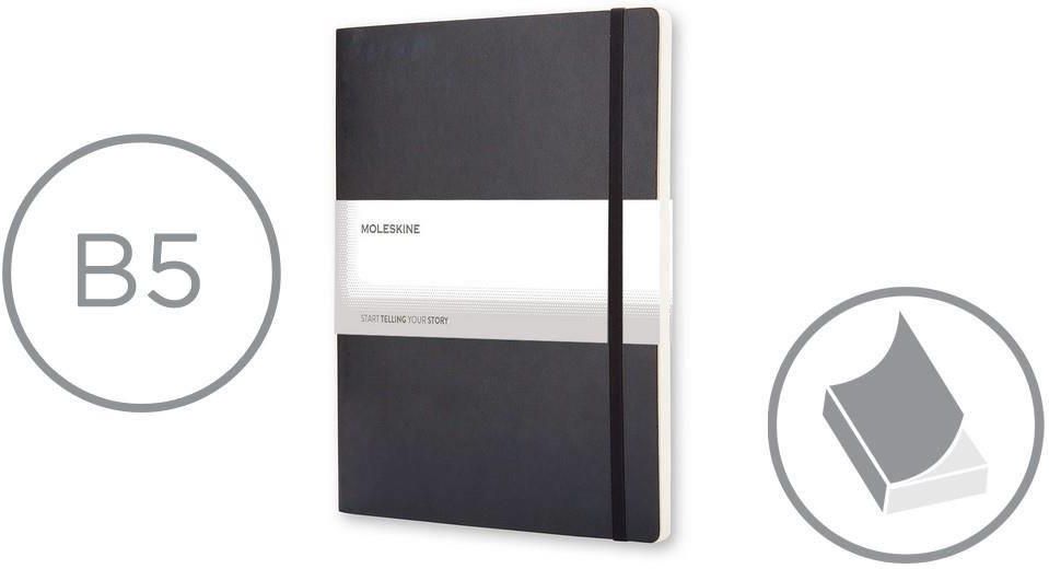 Notatnik XL (ok. B5) MOLESKINE, miękka okładka, 192 gładkie strony, kieszeń wewnętrzna, zakładka i elastyczna opaska do zamykania