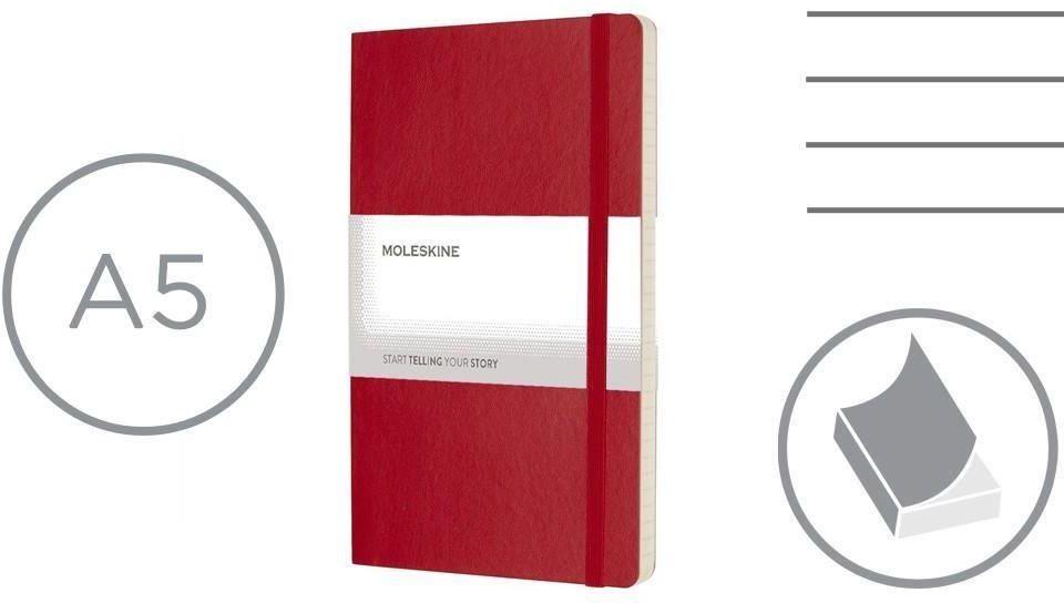 Notatnik duży (ok. A5, large) MOLESKINE, miękka okładka, 192 strony w linie, kieszeń wewnętrzna, zakładka i elastyczna opaska do zamykania