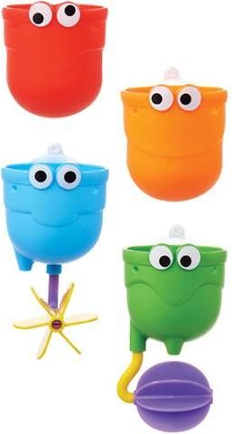Munchkin zestaw kubeczków do kąpieli i nalewania Falls™ Stwórz wodospad! Jeden kubek do nabierania i polewania zabawek Trzy różne zabawki przyczepiają się do ściany wanny za pomocą przyssawek Ustaw zabawki pionowo, aby wywołać reakcję łańcuchową, gdy woda jest wylewana z góry Mieszaj pozycje …