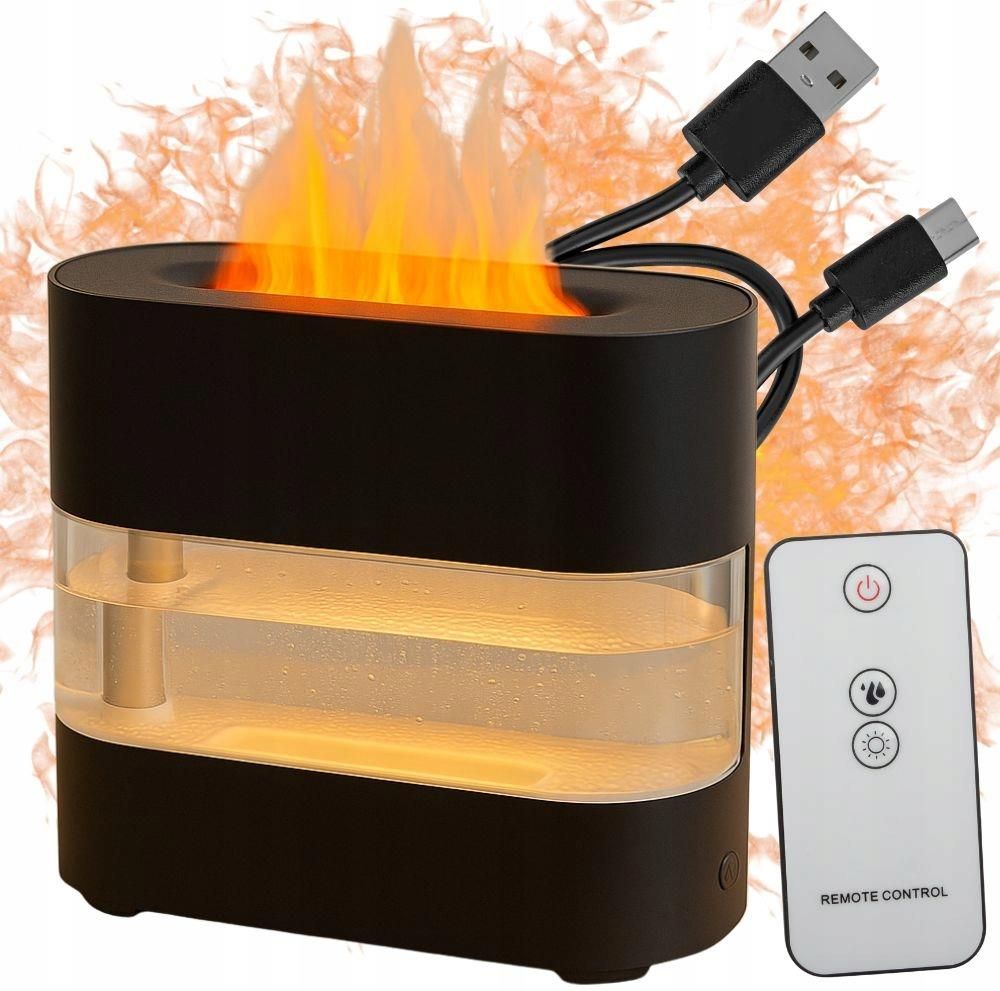 NAWILŻACZ POWIETRZA KOMINEK LED Z EFEKTEM PŁOMIENI AROMATERAPIA USB PILOT Gdańsk