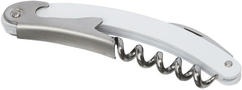 Nóż kelnerski ze stali nierdzewnej z kolorowym korpusem, wyposażony w przecinak do folii i otwieracz do butelek.
