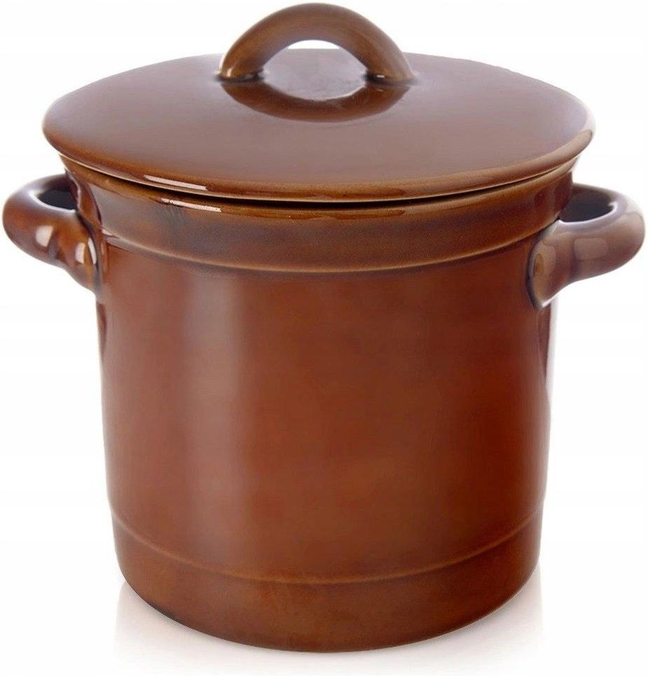Pojemnik CERAMICZNY kuchenny garnek na smalec pasztet ogórki żywność 1L Kod produktu: 127610 Najważniejsze informacje Pojemnik kuchenny z pokrywką o pojemności 1 l - Praktyczny pojemnik z pokrywką w kształcie garnka. Idealny do przechowywania smalcu, pasztetów, past, skwarków, serów w zalewie czy marynowanych kiełbasek. Pojemnik ma wymiary 17 x 14 cm, wysokość pojemnika wynosi 12 cm, a wysokość z pokrywką to 15 cm. Pojemnik ma pojemność 1 l. Wykonany z ceramiki - Wykonany z najwyższej jakości ceramiki w kolorze brązowym. Garnek jest wykonany z ceramiki, która nie przepuszcza światła, dzięki czemu utrzymuje stałą temperaturę żywności, co zapewnia lepsze warunki dla dojrzewania i dobrego smaku. Praktyczna pokrywkai wygodne uchwyty - Garnek posiada pokrywkę, która zapewnia szczelność, chroniąc potrawy przed dostępem powietrza i niepożądanymi mikroorganizmami. Naczynie posiada dwa uchwyty, które ułatwiają przenoszenie. Uniwersalne zastosowanie - Naczynie znajdzie wszechstronne zastosowanie w kuchni. Doskonale nadaje się do domowego marynowania żywności, takich jak ogórek kiszony, marynowanych ryb, serów i inne marynowanych przysmaków w oleju, solance lub occie. Odpowiedni do przechowywania smalcu, pasztetu, soli itp. Naczynie sprawdzi się również do zapiekania potraw w piekarniku. Nadaje się do zmywarki, mikrofalówki, piekarnika - Pojemnik można myć w zmywarce do naczyń. Można podgrzewać w nim potrawy w mikrofalówce, a także używać w piekarniku w temperaturze do 200°C. Pojemnik kuchenny w kształcie garnka, posiada uniwersalne zastosowanie. Idealny do kiszenia warzyw, przechowywania smalcu, potraw, a także do zapiekania. Zapakowany w karton będzie świetnym pomysłem na prezent. Oryginalny produkt czeskiej marki Orion. Wyprodukowano zgodnie z europejskimi standardami. Materiał: ceramika Długość: 17 cm Szerokość: 14 cm Wysokość: 15 cm Pojemność: 1 l Waga (g): 1019 Kolor dominujący: brązowy Orion - tworzymy Twój dom Orion to marka, która ma korzenie w Czechach i od momentu swojego założenia w 1992 roku, stała się synonimem jakości, innowacji i dbałości o potrzeby klientów. Nasza firma jest dumna z wieloletniej tradycji i zaangażowania w dostarczanie produktów do domu, kuchni, łazienki i ogrodu, które spełniają najwyższe standardy jakości. Oferta marki Orion to bogactwo kilku tysięcy rodzajów produktów, które zapewniają rozwiązania na miarę współczesnych potrzeb. Bez względu na to, czy szukasz funkcjonalnych akcesoriów do kuchni, eleganckich elementów wyposażenia domu, czy łazienki - Orion ma to, czego potrzebujesz. Priorytet to zadowolenie Klienta. Dlatego starannie dobieramy naszą ofertę produktów, dbając o to, aby każdy produkt spełniał oczekiwania naszych Klientów. Orion to marka, która łączy jakość, elegancję i funkcjonalność w jednym. Nasze produkty są nie tylko praktyczne, ale także estetycznie wykonane, co pozwala Ci cieszyć się życiem w pięknie urządzonym otoczeniu.