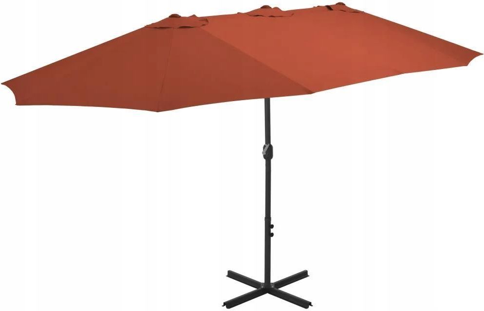 Ten podwójny parasol będzie doskonałym wyborem, jeśli chcesz ochronić się przed słońcem i szkodliwymi promieniami UV. Wykonana z chroniącego przed UV i nieblaknącego poliestru czasza parasola zapewnia optymalną ochronę przed słońcem i jest łatwa w czyszczeniu. Solidna, krzyżowa podstawa nadaje konstrukcji stabilność. Ekskluzywna forma parasola oferuje dodatkową powierzchnię zatrzymującą promienie słoneczne. Mocny, aluminiowy słupek i 12 wytrzymałych żeber czynią parasol bardzo stabilnym i trwałym. Można go łatwo otworzyć i zamknąć za pomocą mechanizmu z korbką. Montaż produktu jest łatwy. Uwaga: zalecamy zastosowanie sprayu impregnującego na parasol, jeśli ma być on narażony na intensywne opady deszczu. Kolor: terakota Materiał: tkanina + aluminiowy słupek i żebra Wymiary całkowite: 460 x 270 x 246 cm (dł. x szer. x wys.) Wymiary podstawy krzyżowej: 100 x 100 cm (dł. x szer.) Średnica słupka: 48 mm Mechanizm z korbką Zawiera 12 żeber Materiał: Poliester: 100%