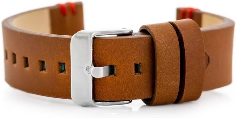 Pasek skórzany do zegarka W110 - brąz/czerwone - 20mm Gdańsk