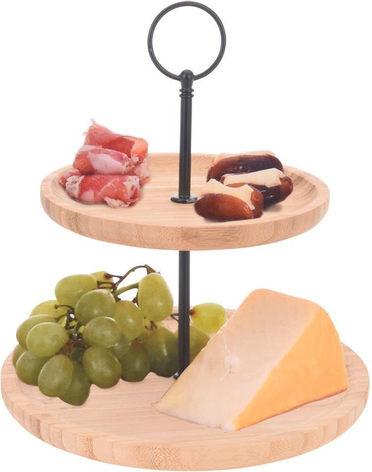 Patera drewniana 2-poziomowa naturalna 24 cm Excellent Houseware EFEKTOWNA - Patera do serwowania oraz ekspozycji. Patera ma wysokość 24 cm. Idealna do ciast, tortów, owoców oraz przekąsek. DREWNIANA - Wykonana z drewna bambusowego a elementy mocujące z metalu w kolorze czarnym. 2-POZIOMOWA - …