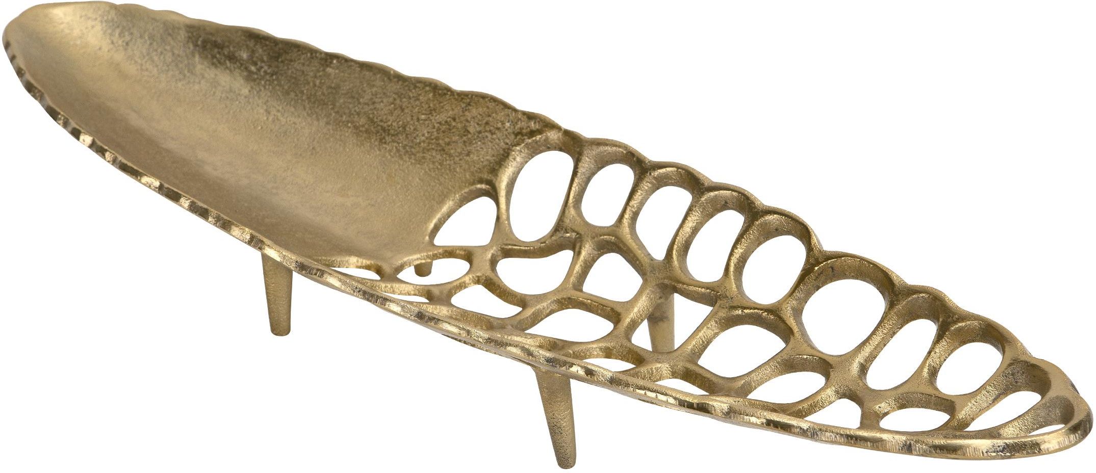 Piękna patera o interesującym kształcie. Bardzo elegancki element dekoracji wnętrza. Złoty kolor patery prezentuje się bardzo dostojnie. To bardzo nietypowa kompozycja, zainteresuje każdego kto lubi niecodzienne rozwiązania. Patera wykonana jest starannie i z dbałością o szczegóły. Świadczy to o wysokiej jakości produktu. Patera pięknie prezentuje się na stole, ale może być też bardzo okazałym elementem dekoracyjnym, niezależnie od tego, gdzie ją umieścimy. Doskonale sprawdzi się na komodach, półkach czy przeszklonych witrynach. Wszelkie dodatki widoczna na zdjęciach służą celom dekoracji.