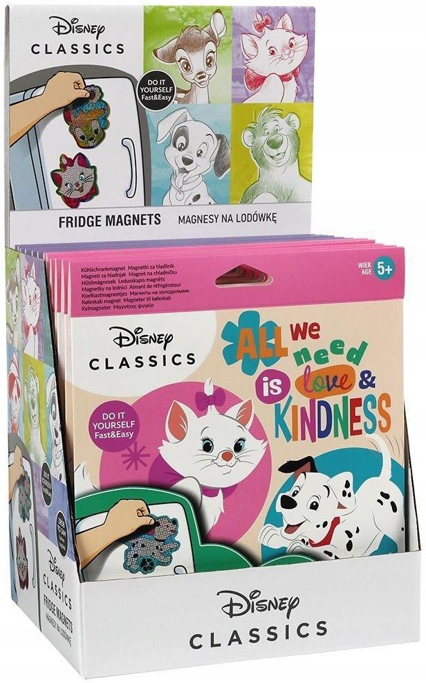 Bajkowa Kolekcja Disney Magnesy na lodówkę Zestaw kreatywny "Zrób to sam" Zestaw zawiera 4 magnesy i 10 folii do dekoracji Instrukcja: usuń biały papier z magnesu połóż folię (kolorową częścią do góry) na magnes z warstwą kleju dociśnij folię do magnesu usuń pozostałą folię powtórz czynności z …
