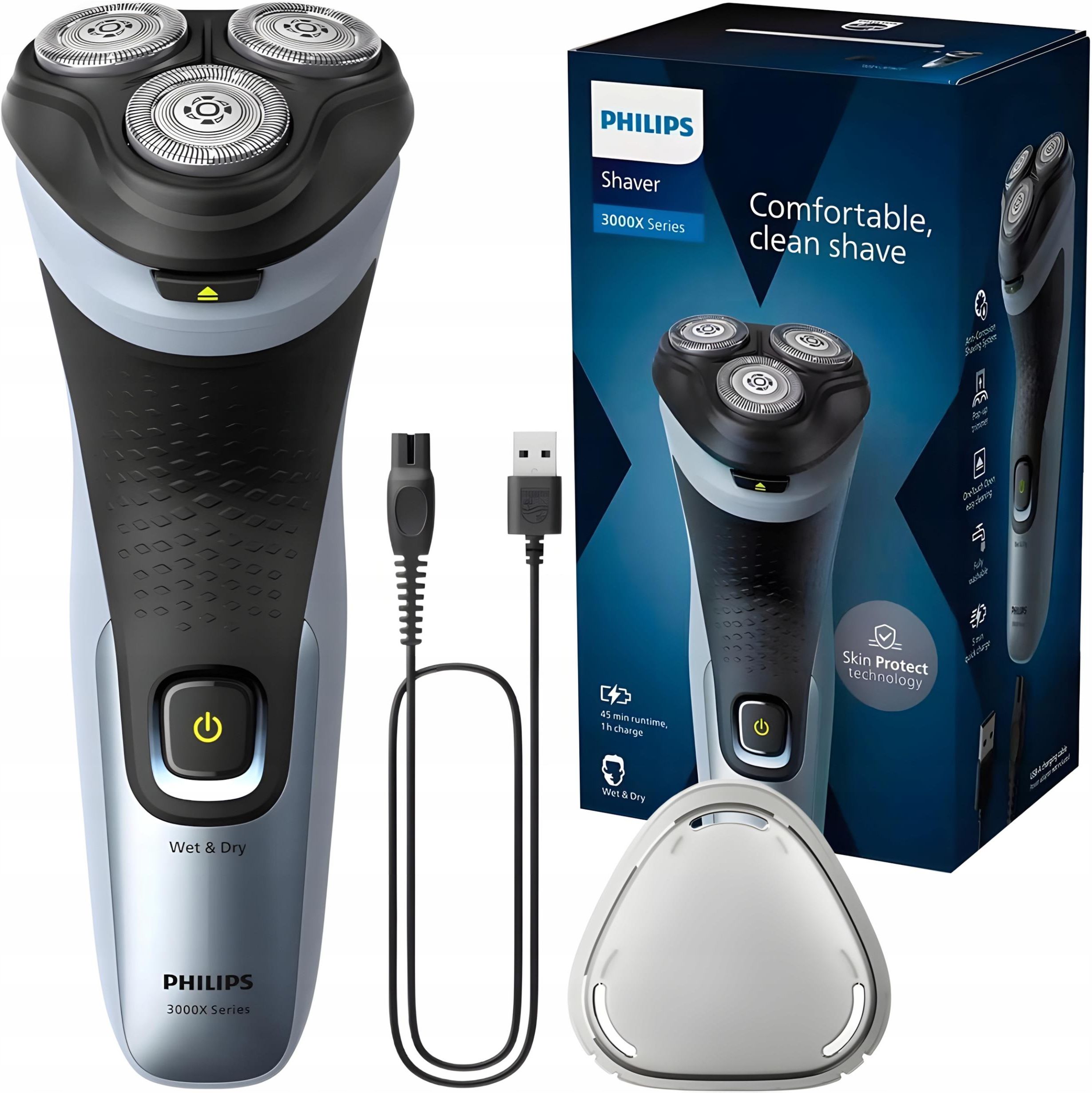 Maszynka Elektryczna do Zarostu dla Mężczyzn Philips Series 3000x X3021/00 Zawartość zestawu Golarka Philips Series 3000x X3063/00 Nakładka zabezpieczająca na głowicę Kabel ładujący do adaptera Dlaczego warto wybrać Philips Series 3000x X3063/00? Ochrona skóry – technologia SkinProtect i ostrza …