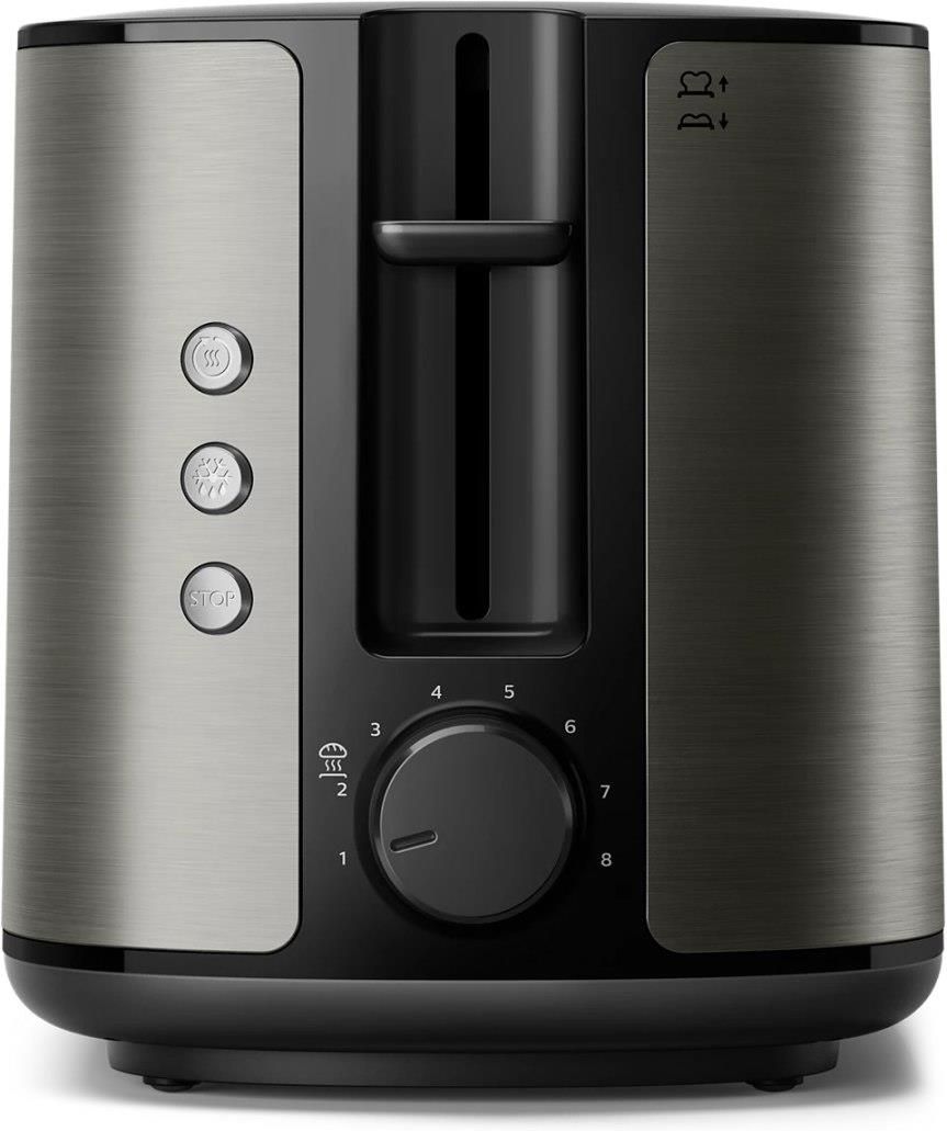 Toster Philips HD2651/80 Nowoczesny toster Philips HD2651/80 łączy w sobie funkcjonalność i elegancję, stając się niezbędnym urządzeniem w każdej kuchni. Dzięki moc 950 watów oraz możliwości toastingowania dwóch kromek jednocześnie, przygotujesz ulubione pieczywo w mgnieniu oka.  Wprowadzenie manualnej kontroli opiekania Pozwala precyzyjnie dostosować stopień przypieczenia do indywidualnych preferencji, co sprawia, że każdy posiłek jest wyjątkowy. Toster wyposażony jest w innowacyjne funkcje, takie jak wysoka podnoszenie, co umożliwia wygodne wyjmowanie mniejszych kromek bez obaw o oparzenia, czy wyjmowana tacka na okruchy, która ułatwia czyszczenie. Design Elegancka, stal nierdzewna w kolorze tytanowym nie tylko zapewnia nowoczesny wygląd, ale także gwarantuje trwałość urządzenia. Dodatkowo, zintegrowany schowek na kabel pozwala na łatwe przechowywanie tostera, minimalizując bałagan na blacie kuchennym. Toster Philips HD2651/80 jest idealnym wyborem dla osób ceniących sobie wygodę oraz estetykę w kuchni.