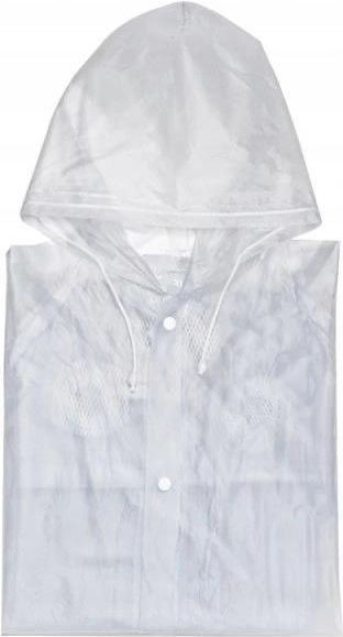 Płaszcz przeciwdeszczowy zapinany na zatrzaski z tworzywa PVC, z kapturem i kieszeniami. Dostępny w rozmiarze XL, przezroczysty lub w niebieskim kolorze. Logotyp umieszczamy na wysokości klatki piersiowej. Pakowany w torbę foliową.