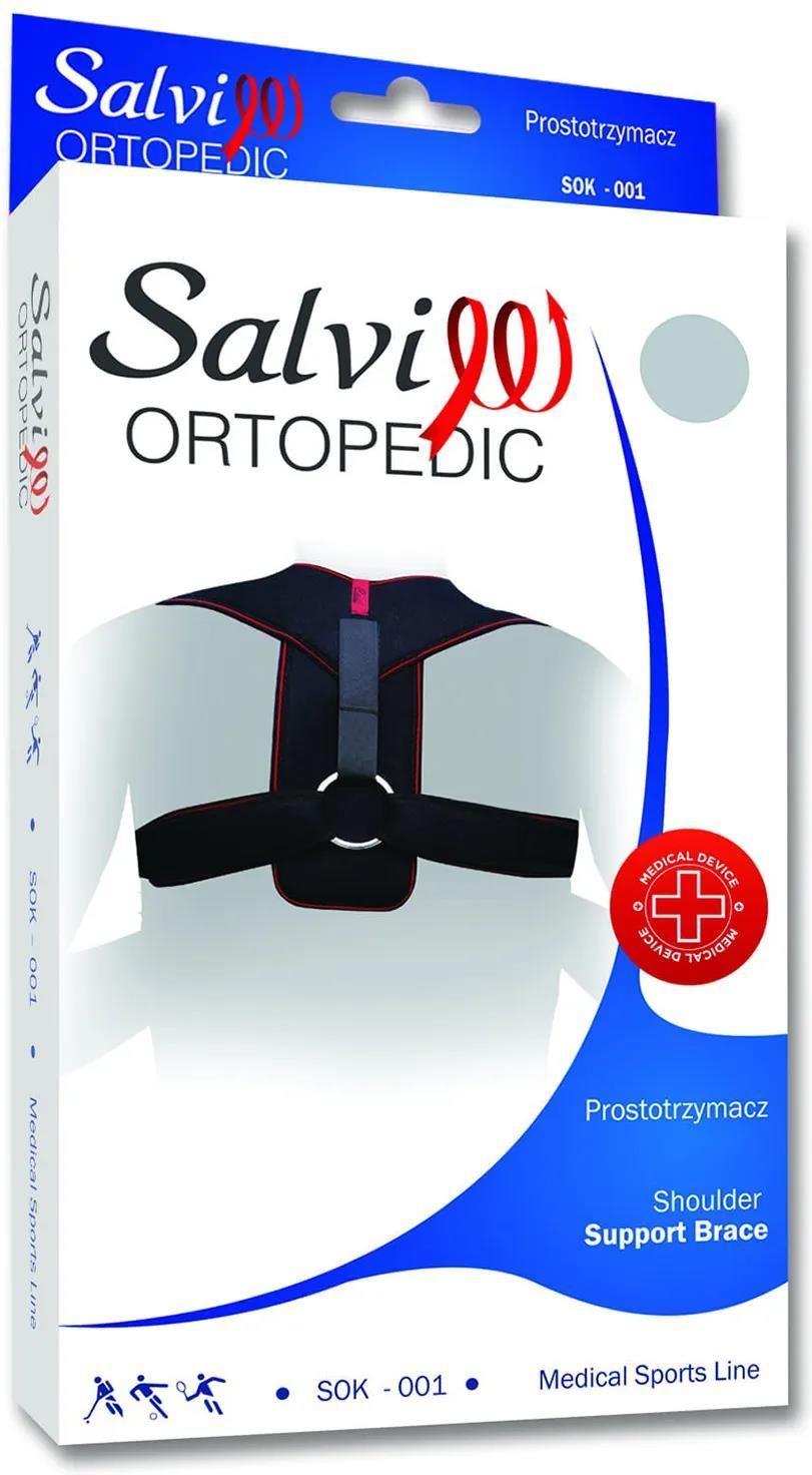 Salvi Ortopedic Wyrób medyczny w postaci korektora postawy. Produkt przeznaczony jest do stosowania w celu wymuszenia właściwej, fizjologicznej postawy ciała, a także wyrobienia nawyku prawidłowej postawy. Stosowanie produktu pomaga zmniejszać ból pleców i kręgosłupa.