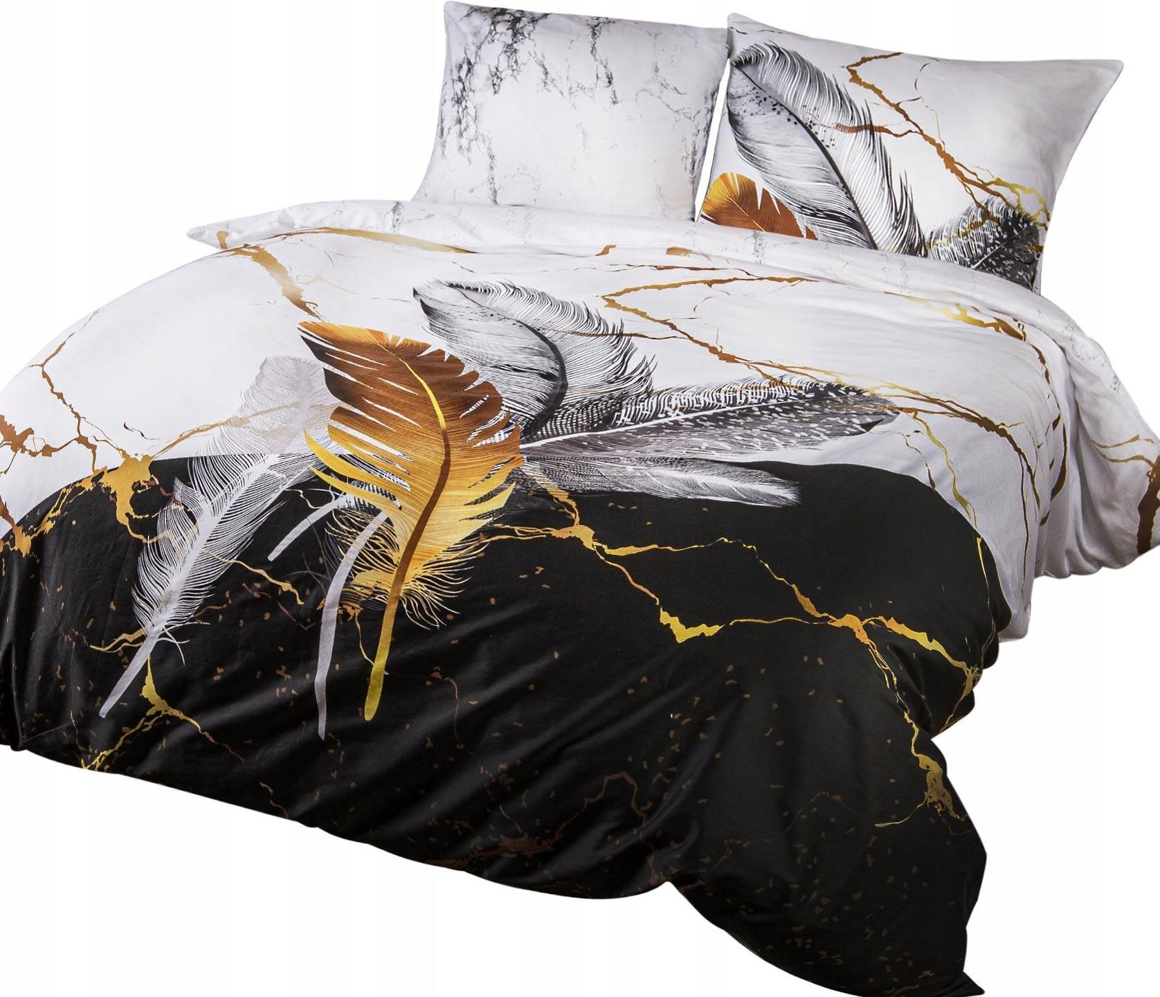 Pościel satynowa satyna bawełniana 160x200 liście pióra biała czarna Panel 1772012944 Gdańsk