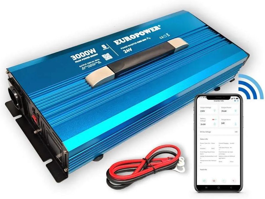 PRZETWORNICA NAPIĘCIA INWERTER EUROPOWER 24V DC / 230V AC 3000W / 6000W CZYSTY SINUS BLUETOOTH Gdańsk