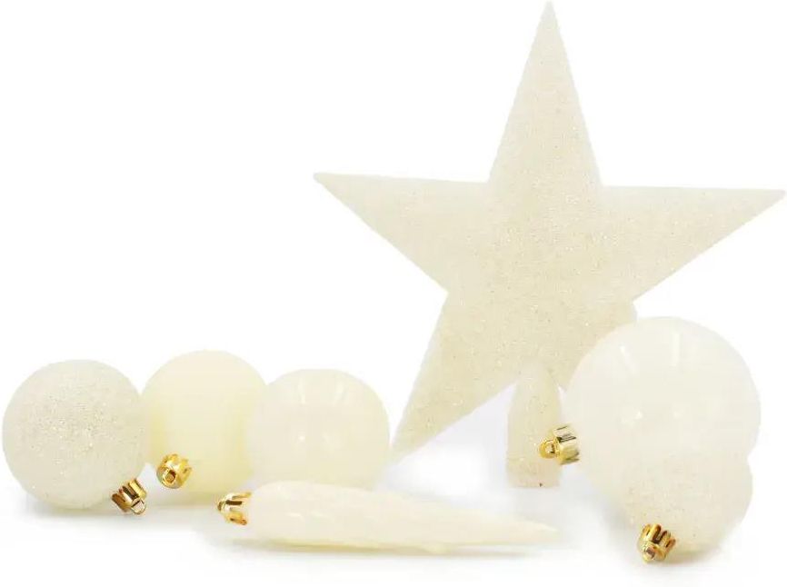 Rgl Bombki Choinkowe Ze Szpicem Komplet 33szt. Nietłukących Plastikowych Bombek Ecru Gdańsk