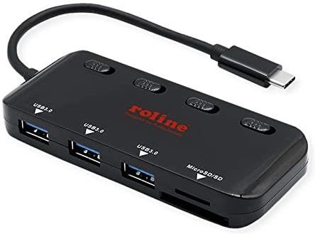 ROLINE HUB USB 3.2 GEN 1, 3-KROTNY, KABEL PRZYŁĄCZENIOWY TYPU C, Z CZYTNIKIEM KART, MOŻLIWOŚĆ PRZEŁĄCZANIA POJEDYNCZO, CZARNY () Gdańsk