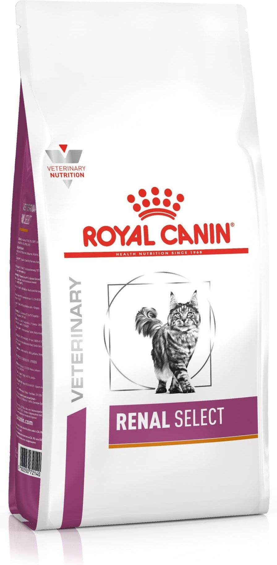 Dieta RENAL SELECT to pełnoporcjowa dietetyczna karma dla kotów:- poprawia funkcjonowanie nerek w przypadku przewlekłej lub ostrej niewydolności tego narządu, dzięki niskiej zawartości fosforu oraz białek, które jednak charakteryzują się wysoką jakością; – zapobiega powstawaniu kamieni szczawianowych, dzięki niskiej zawartości wapnia i witaminy D oraz zdolności do alkalizacji moczu. Wskazania:   Przewlekła niewydolność nerek Zapobieganie nawrotom kamicy oksalatowej u kotów z upośledzoną czynnością nerek Zapobieganie nawrotom kamic wymagających alkalizacji moczu: kamienie moczanowe i cystynowe   Przeciwwskazania:   Ciąża, laktacja, okres wzrostu   WSPARCIE DLA NEREK Dieta o niskim poziomie fosforu oraz umiarkowanej zawartości białka, które charakteryzuje się jednocześnie wysoką jakością, opracowana w celu wsparcia funkcjonowania nerek i poprawy jakości życia kota.   ODPOWIEDNI POZIOM ENERGII Odpowiedni poziom energii umożliwia zmniejszenie objętości posiłku i pomaga zrekompensować skutki obniżonego apetytu.   POBUDZENIE APETYTU Unikalny profil aromatyczny oraz odpowiedni kształt i tekstura krokieta pomagają pobudzić apetyt kota, zwłaszcza w przypadku awersji pokarmowej. Skład: tłuszcze zwierzęce, ryż, parzona mąka pszenna, suszone białko wieprzowe*, mąka pszenna, gluten pszenny*, włókno roślinne, gluten kukurydziany, hydrolizat białka zwierzęcego, suszone ryby, sole mineralne, pulpa z cykorii, olej rybny, olej sojowy, mono- i diglicerydy kwasów palmitynowego i stearynowego estryfikowane kwasem cytrynowym, łuski i nasiona psyllium, fruktooligosacharydy, wyciąg z aksamitki wzniesionej (źródło luteiny). Źródła białka: suszone białko wieprzowe*, gluten pszenny*, gluten kukurydziany, hydrolizat białka zwierzęcego. *L.I.P.: białko wyselekcjonowane ze względu na bardzo wysoką przyswajalność. Dodatki (na 1 kg karmy): Dodatki dietetyczne: Witamina A: 21000 UI, Witamina D3: 800 UI, Żelazo (3b103): 45 mg, Jod (3b201, 3b202): 4,5 mg, Miedź (3b405, 3b406): 14 mg, Mangan (3b502, 3b504): 58 mg, Cynk (3b603, 3b605, 3b606): 148 mg, Selen (3b801, 3b811, 3b812): 0,08 mg – Dodatki technologiczne: Klinoptylolit pochodzenia osadowego: 10 g – Konserwanty – Przeciwutleniacze. Składniki analityczne: Białko surowe: 24,5% – Oleje i tłuszcze surowe: 21,5% – Popiół surowy: 6,6% – Włókno surowe: 4,6% – Wapń: 0,7% – Fosfor: 0,41% – Potas: 0,9% – Sód: 0,45% – Magnez: 0,08% – Chlorki: 0,94% – Siarka: 0,4% – Witamina D (łącznie): 900,0 UI/kg – Hydroksyprolina: 0,42% – EPA/DHA: 0,41% – Niezbędne, nienasycone kwasy tłuszczowe (kwas linolowy, kwas arachidonowy): 3,51% – Substancje alkalizujące mocz: cytrynian potasu, węglan wapnia.