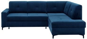 Miękka, welurowa tkanina w granatowym kolorze, lekka bryła oraz pikowane oparcia narożnika FOXY sprawiają, że salon lub pokój dzienny staje się elegancką wizytówką mieszkania. Granatowy narożnik pozwoli stworzyć nietuzinkową aranżację wnętrza, która wpisuje się w aktualne trendy. Ożywi wnętrze i będzie reprezentacyjnym akcentem w mieszkaniu, który przyciąga wzrok. Metalowe nóżki nadają mu lekkości, a dzięki niewielkiej szerokości możesz wybrać go nawet do małych mieszkań. Kolor tapicerki świetnie łączy się ze złotymi, białymi czy szarymi dodatkami. FUNKCJA SPANIA Narożnik jest wyposażony w mechanizm rozkładania typu delfin. Wystarczy wysunąć i podnieść za pomocą uchwytu stelaż, umiejscowiony pod siedziskiem. Powierzchnia spania wynosi 123x190 cm. POJEMNIK NA POŚCIEL W otomanie znajduje się pojemnik na dodatkową pościel, koce, czy inne tekstylia. WYKOŃCZENIE Siedzisko jest amortyzowane za pomocą sprężyn falistych oraz pianki. Narożnik obito miękką w dotyku tkaniną RIVIERA. Podstawą narożnika są czarne, metalowe nóżki.
