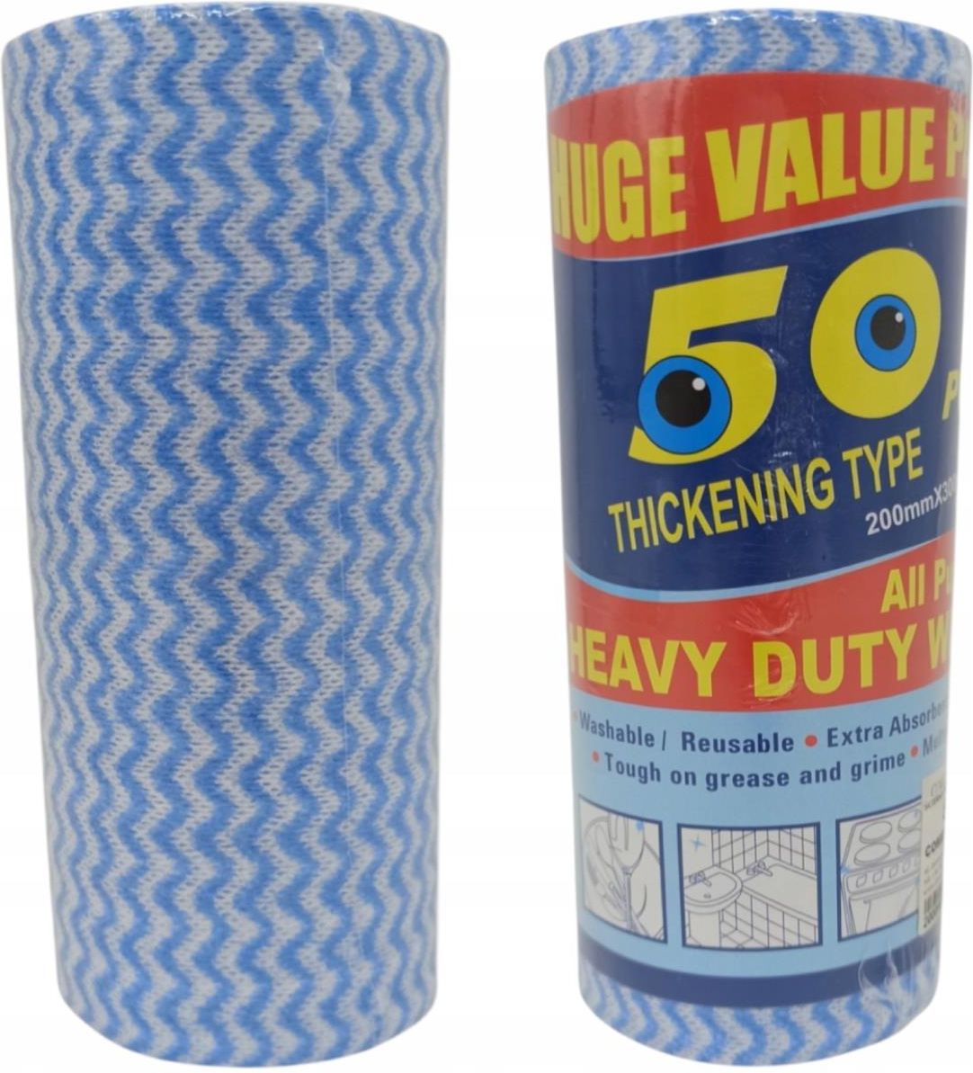 ŚCIERECZKI CZYSZCZĄCE W ROLCE WIELORAZOWE CHŁONNE KUCHNIA NIEBIESKIE 50 SZT Rewolucja w Domowych Porządkach – Wielorazowe Ściereczki w Rolce HEAVY DUTY! Masz dość ciągłego kupowania jednorazowych ręczników papierowych, które szybko się zużywają i generują niepotrzebne odpady? Postaw na ekonomiczne i ekologiczne rozwiązanie! Przedstawiamy nasze Wytrzymałe Ściereczki w Rolce "HUGE VALUE 50" – THICKENING TYPE – HEAVY DUTY WIPE! To prawdziwa innowacja w utrzymaniu czystości w Twoim domu i nie tylko! Ta duża rolka zawiera aż 50 grubych, super chłonnych ściereczek, które sprostają każdemu wyzwaniu! Zaprojektowane z myślą o efektywności i trwałości, są idealne do różnorodnych zastosowań, od codziennego sprzątania po najbardziej wymagające zadania. Dlaczego nasze ściereczki to MUST-HAVE w Twoim domu? Wielorazowe i Ekonomiczne: Zapomnij o marnowaniu ręczników papierowych! Nasze ściereczki są w pełni pralne i wielorazowego użytku. Wypierz je, a będą gotowe do kolejnych zadań, co pozwoli Ci zaoszczędzić pieniądze i dbać o środowisko. Wyjątkowa Chłonność: Dzięki specjalnej strukturze, ściereczki doskonale wchłaniają płyny, rozlane napoje i inne zabrudzenia, pozostawiając powierzchnie suche i czyste. Uniwersalne Zastosowanie : Niezależnie od tego, czy potrzebujesz ich do kuchni, łazienki, na taras, do samochodu czy do garażu – te ściereczki sprawdzą się wszędzie! Ich wszechstronność czyni je niezastąpionym elementem każdego zestawu do sprzątania. Przekonaj się, jak łatwe i efektywne może być sprzątanie! Inwestuj w jakość, oszczędność i wygodę z naszymi wielorazowymi ściereczkami w rolce! Typ: Ściereczki wielorazowe w rolce Ilość w rolce: 50 sztuk Wymiary pojedynczej ściereczki: Ok. 200mm x 300mm (podane na opakowaniu) Materiał: Wysokiej jakości, gruby, chłonny materiał Wzór: Dekoracyjny wzór fal w odcieniach niebieskiego (jak na zdjęciu) Możliwość prania: Tak, wielokrotnego użytku Zastosowanie: Uniwersalne (kuchnia, łazienka, samochód, warsztat, inne powierzchnie) Właściwości: Grube, super chłonne, wytrzymałe na rozrywanie, skuteczne w usuwaniu tłuszczu i brudu. Wielorazowe i Ekonomiczne: Zapomnij o marnowaniu ręczników papierowych! Nasze ściereczki są w pełni pralne i wielorazowego użytku. Wypierz je, a będą gotowe do kolejnych zadań, co pozwoli Ci zaoszczędzić pieniądze i dbać o środowisko.