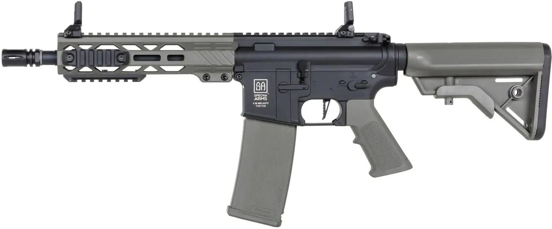 Elektryczna replika karabinka szturmowego SA-F08 z serii Flex Gen. 2, wykonana ze wzmocnionego włóknem nylonowym polimeru oraz elementów metalowych. Wyposażona w moduł sterowania HAL ETU, który pozwala dostosować ustawienia do potrzeb użytkownika, bezszczotkowy silnik BLDC oraz system szybkiej wymiany sprężyny ESA. Elementy konstrukcyjne spasowano z dużą precyzją, co przekłada się na wysoką kulturę pracy i płynne działanie mechanizmów.