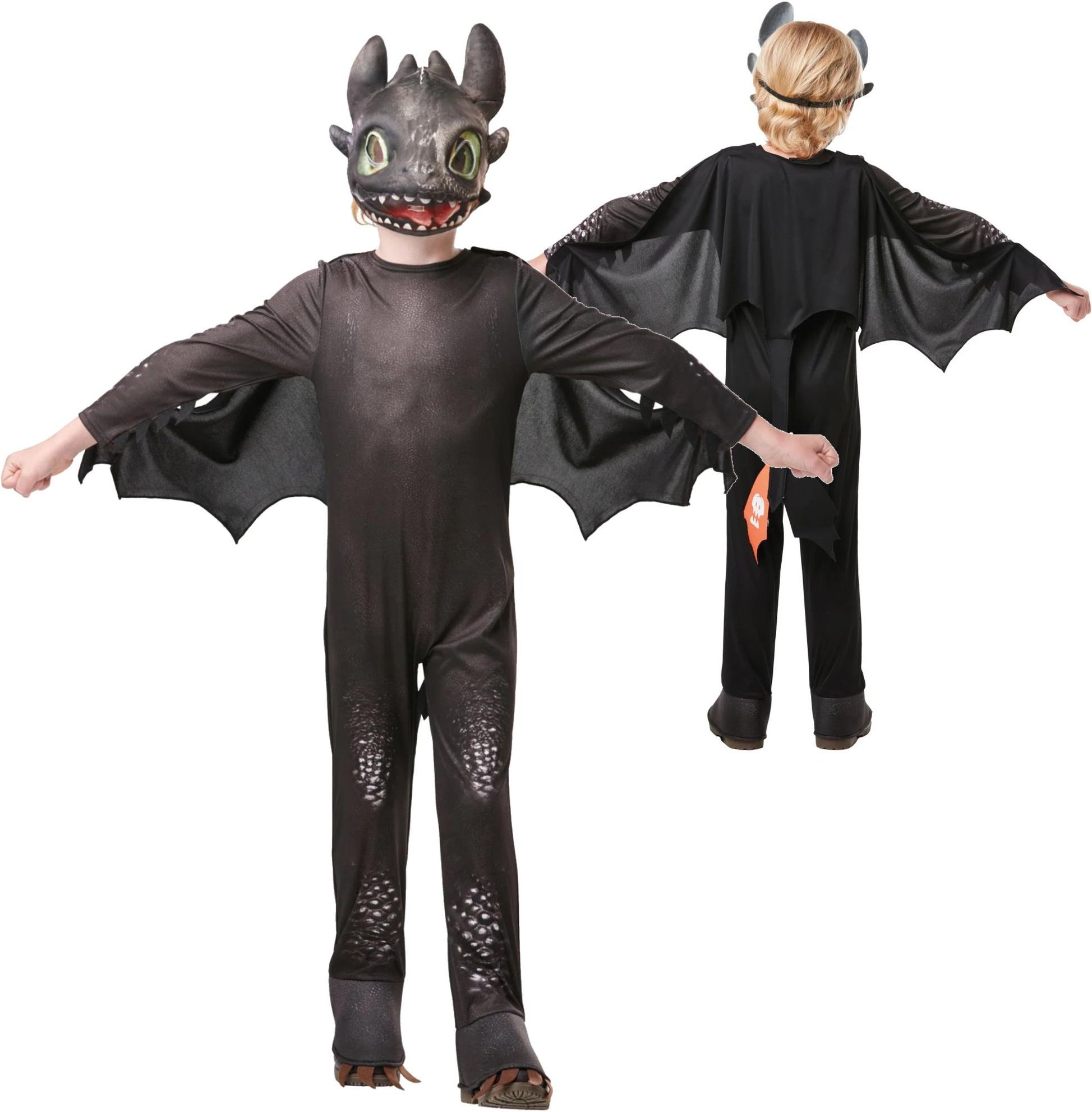 W skład zestawu wchodzi kombinezon z ogonkiem, skrzydła oraz maska. Kostium odwzorowuje charakterystyczne cechy smoka takie jak: uszkodzony ogon, imitację łusek oraz realistyczną buzie. Dla dzieci od 7 do 8 roku życia i wzroście 128 cm.