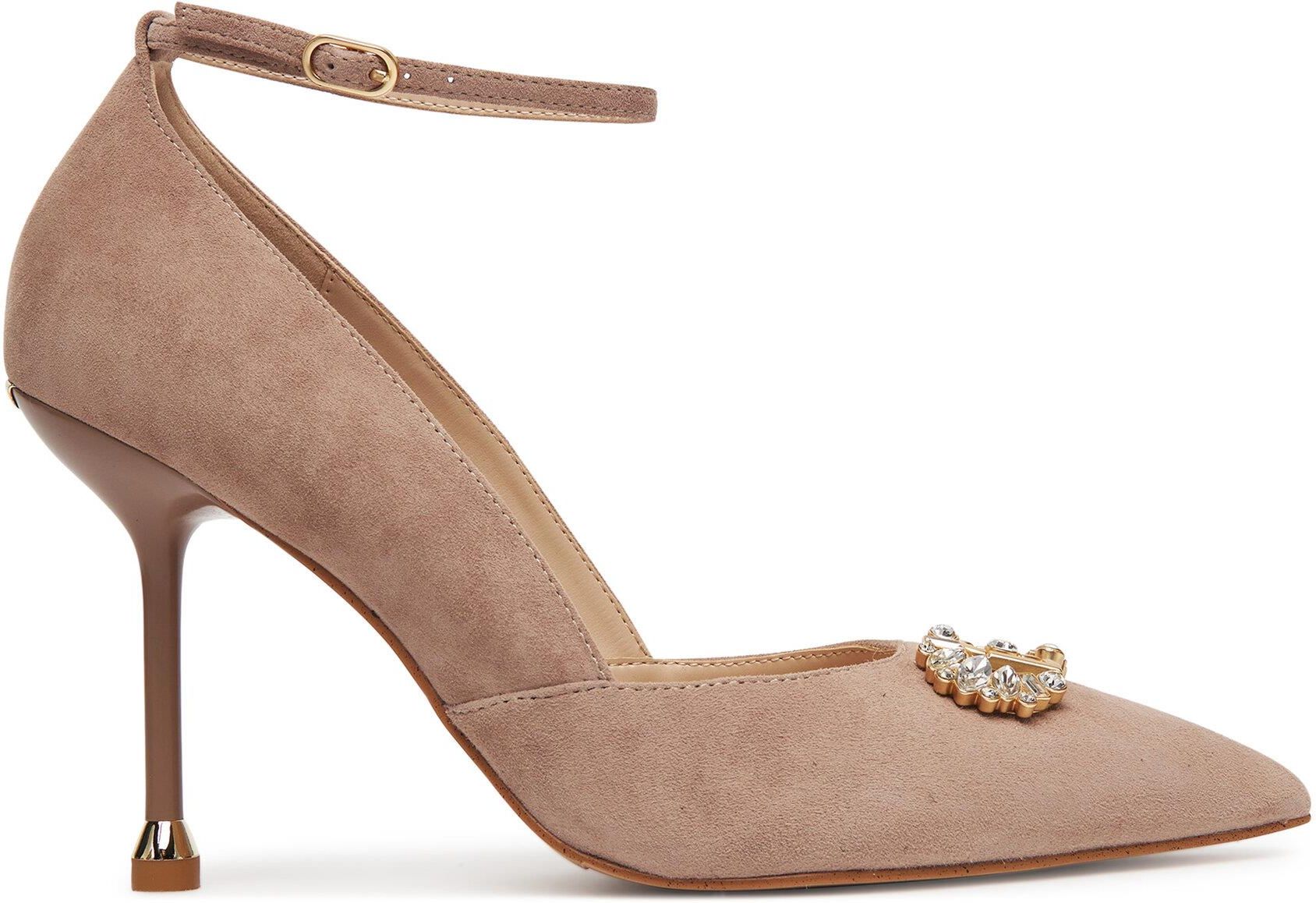 Szpilki damskie marki Liu Jo to kwintesencja elegancji i kobiecości. Wykonane ze skóry naturalnej zamszowej, zachwycają nie tylko wysoką jakością, ale również wyrafinowanym designem. Smukła szpilka oraz szpiczasty nosek optycznie wydłużają nogi, dodając sylwetce lekkości. Ozdobione subtelnymi cyrkoniami, przyciągają uwagę i dodają blasku każdej stylizacji. Sprzączka zapewnia idealne dopasowanie oraz wygodę noszenia. To niezawodny wybór na wyjątkowe okazje, kiedy chcesz poczuć się stylowo i pewnie!