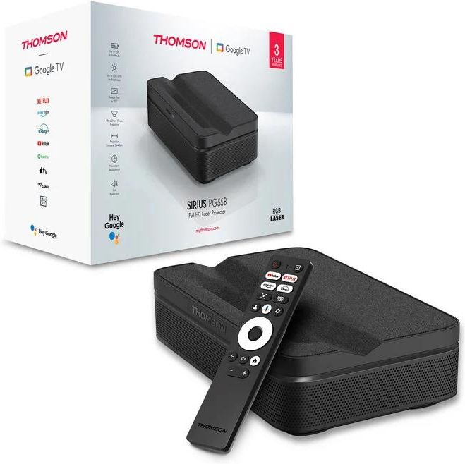 Thomson Sirius. Jasność projektora: 600 ANSI lumenów, Naturalna rozdzielczość projektora: UHD 4K (3840x2160), Współczynnik kontrastu (typowy): 1000:1. Rodzaj źródła światła: Laser, Żywotność źródła światła: 20000 h. Ostrość: Automatyczna. Obsługiwane tryby wideo: 480i, 480p, 576i, 576p, 720p, …