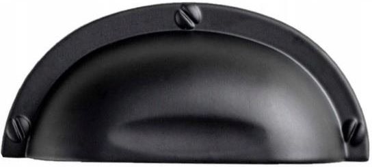 Uchwyt meblowy Muszelka Materiał: metal Wykończenie: czarny mat Rozstaw śrub: 64 mm Długość całkowita: 94 mm Szerokość: 37 mm Głębokość: 20 mm Do każdego uchwytu 2 sztuki wkrętów gratis