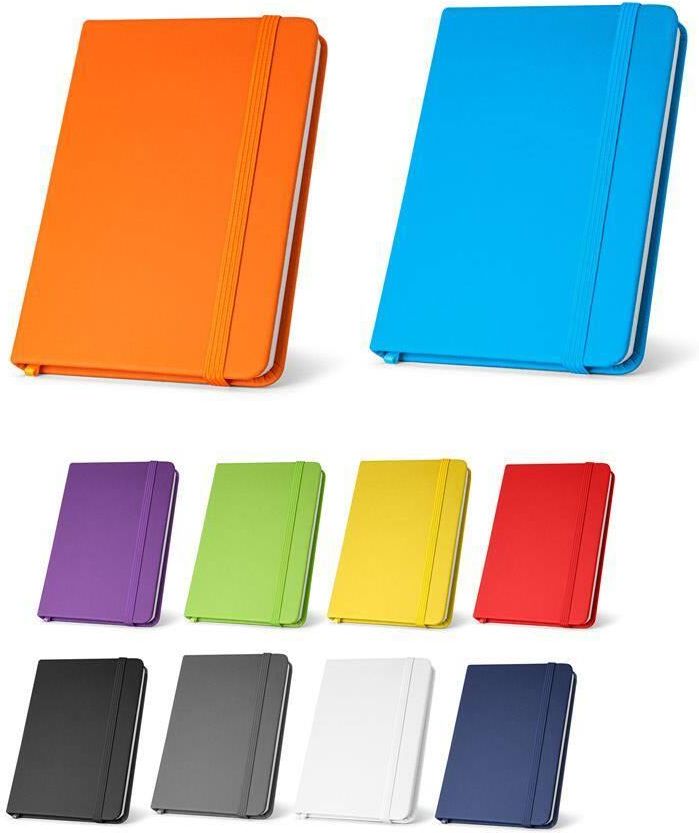 Notes A5 zawierający 160 gładkich stron. Posiada twardą okładkę z PU, zakładkę ze wstążki i gumkę 140 x 210 mm