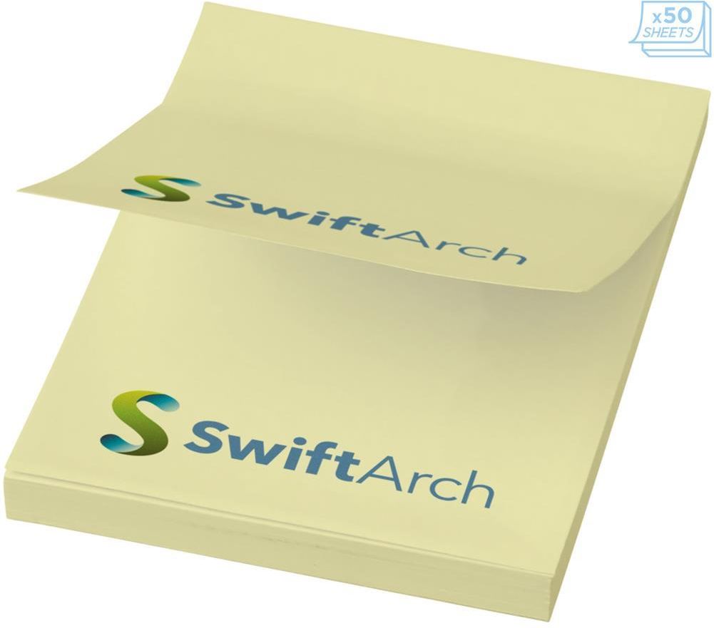 Karteczki samoprzylepne Sticky-Mate®. Składa się z czystych kartek o gramaturze 80g/m2. Standardowo 50 kartek, dostępny również w wersjach 25 lub 100 kartek. Możliwość pełnego, kolorowego zdobienia każdego arkusza. Wymiar arkusza: 50x75mm.