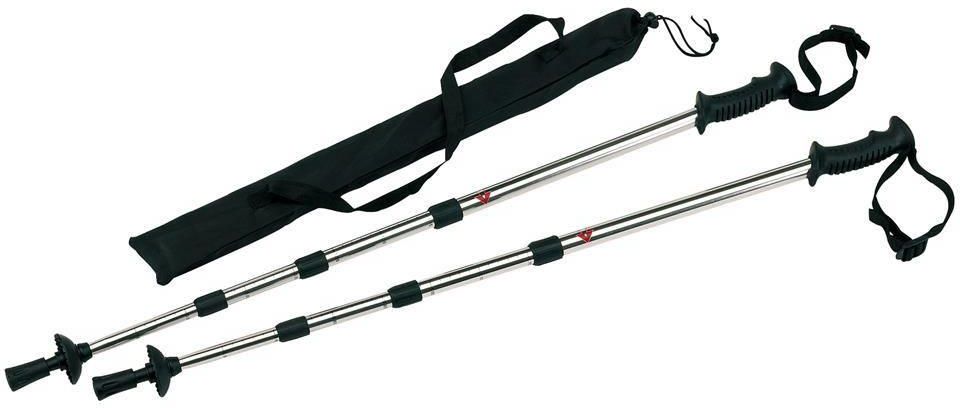 Kijki trekkingowe FIT AND FUN, przedłużane, z kompasem wbudowanym w rączkę, pakowane w pokrowiec do przenoszenia.
