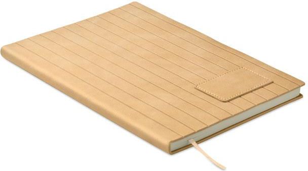 Notatnik A5 z miękką, prążkowaną okładką z PU wykonaną w 40% z materiałów pochodzących z recyklingu i w 60% z PU, z gładką naszywką z PU. 160 stron w linie, papier z recyklingu o gramaturze 70 g/m² (80 arkuszy). Dopasowany kolorystycznie znacznik strony z tasiemki.