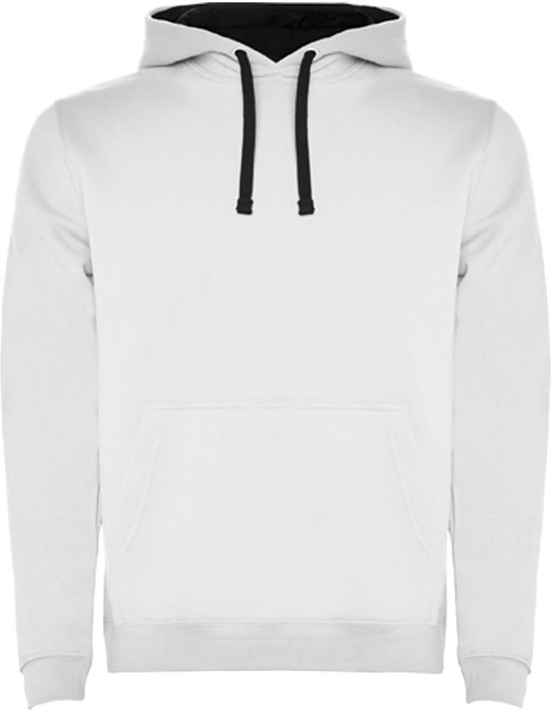 Dwukolorowa bluza z kapturem z podwójnego materiału, kontrastowym regulowanym sznurkiem, wzmocnionymi krytymi szwami w kołnierzu i kieszenią typu kangurka. Ściągacze 1x1 z elastanu w mankietach i pasie. Usuwalna metka.