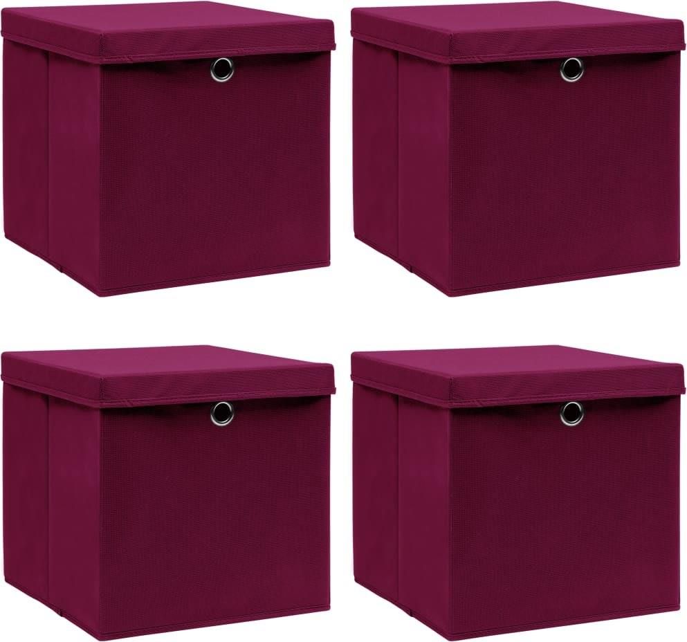 vidaXL 4 pudełka z pokrywami ciemnoczerwone 32x32x32cm tkanina (288342) Gdańsk