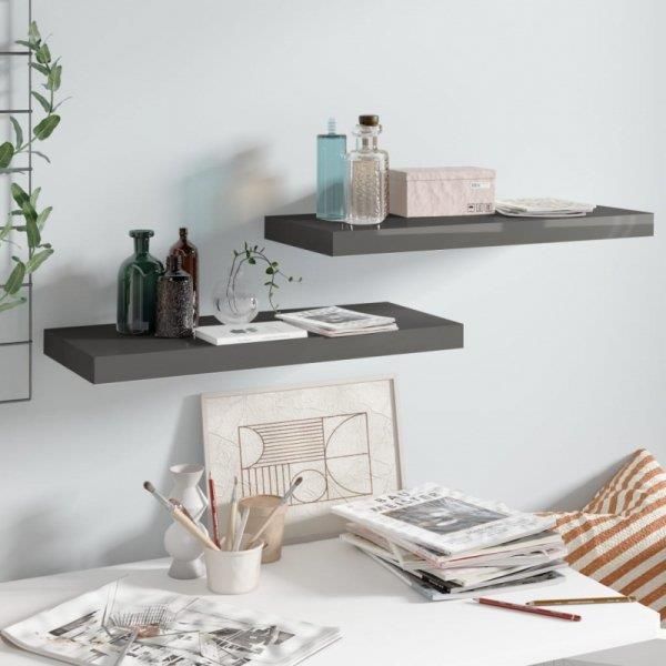 vidaXL Półki Ścienne 2 Szt Wysoki Połysk Szare 60X23 5X3 8Cm Mdf Gdańsk