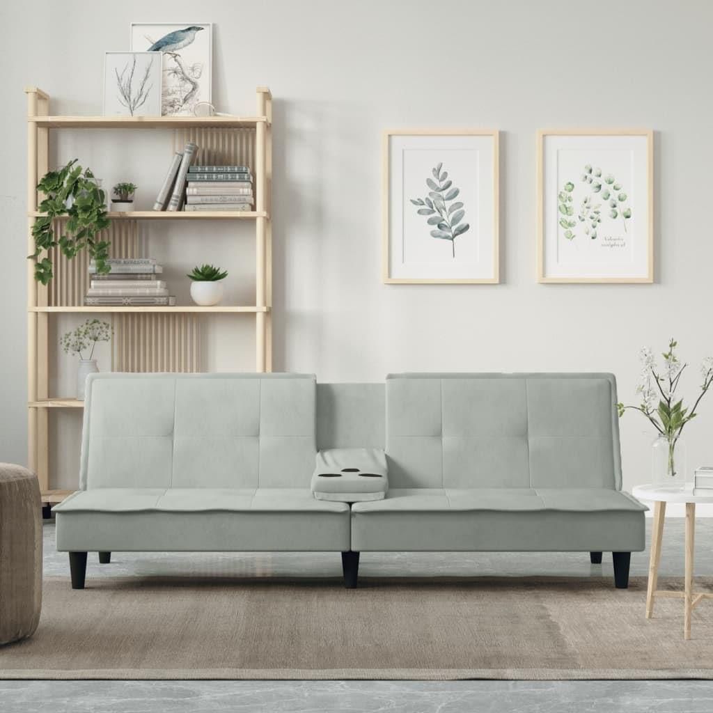 Vidaxl Rozkładana Kanapa Z Uchwytami Na Napoje Jasnoszara Aksamit (351920) Gdańsk