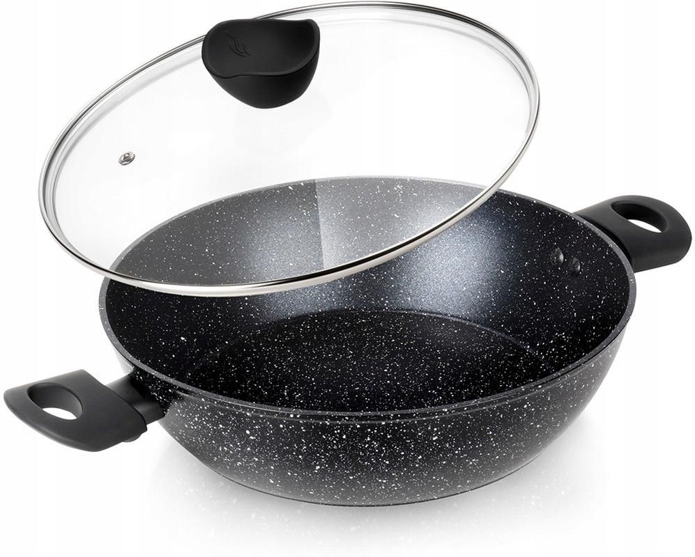 Vilde Patelnia Granitowa Głęboka Ze Szklaną Pokrywką Black Line 28cm 3,5L Gdańsk