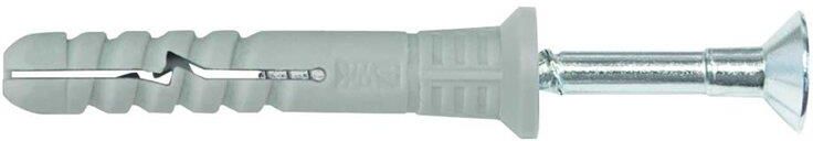 Kołki szybkiego montażu 8 x 100 blister 5 szt. Kołek wbijany zalecany do montażu elementów drewnianych i drewnopodobnych, koszulka z polipropylenu. Zastosowanie Zalecany do montażu elementów drewnianych i drewnopodobnych, do montażu profili przyściennych w konstrukcjach sufitów i ścian gk, rekomendowane do seryjnego montażu, do montażu listew przypodłogowych. Właściwości Średnica [mm]: 8 Materiał: Polipropylen / Stal Wymiary korpusu Lk x dk [mm]: 8 x 100 Średnica korpusu dk [mm]: 8 Średnica kołnierza korpusu Dk [mm]: 11 Długość korpusu Lk [mm]: 100 Materiał korpusu: Polipropylen Wymiary wkręta / śruby / trzpienia dw x Lw [mm]: 4,9 x 105 Średnica wkręta / śruby / trzpienia dw [mm] : 4,9 Długość wkręta / śruby / trzpienia Lw [mm]: 105 Materiał wkręta / śruby / trzpienia / gwoździa: Stal Grubość powłoki ochronnej [µm]: min. 5 Typ łba wkręta / śruby / trzpienia: Stożkowy Typ gniazda wkręta / śruby / trzpienia: PZ-2